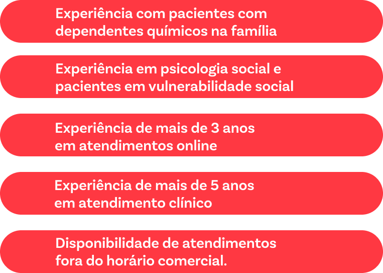 Experiência de mais de 5 anos em atendimento clínico.